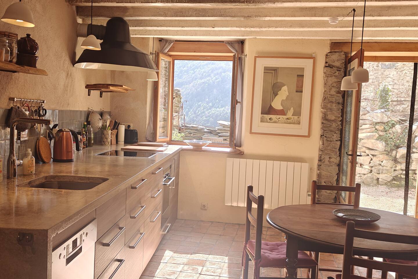 The 1700's 'Mountain Village Studio' in Nohèdes (990m alt.) has been fully restored in 2021 with a contemporary interior design overlooking the village square of Nohèdes with stunning views of the valley and mountains. The location with a small terrace ensures a quiet and peaceful setting. There are great hiking opportunities into the Natural Reserve of Nohèdes with it's 4 lakes and stunning views of the Pyrenées mountains and the Mediterranean Sea in the distance.