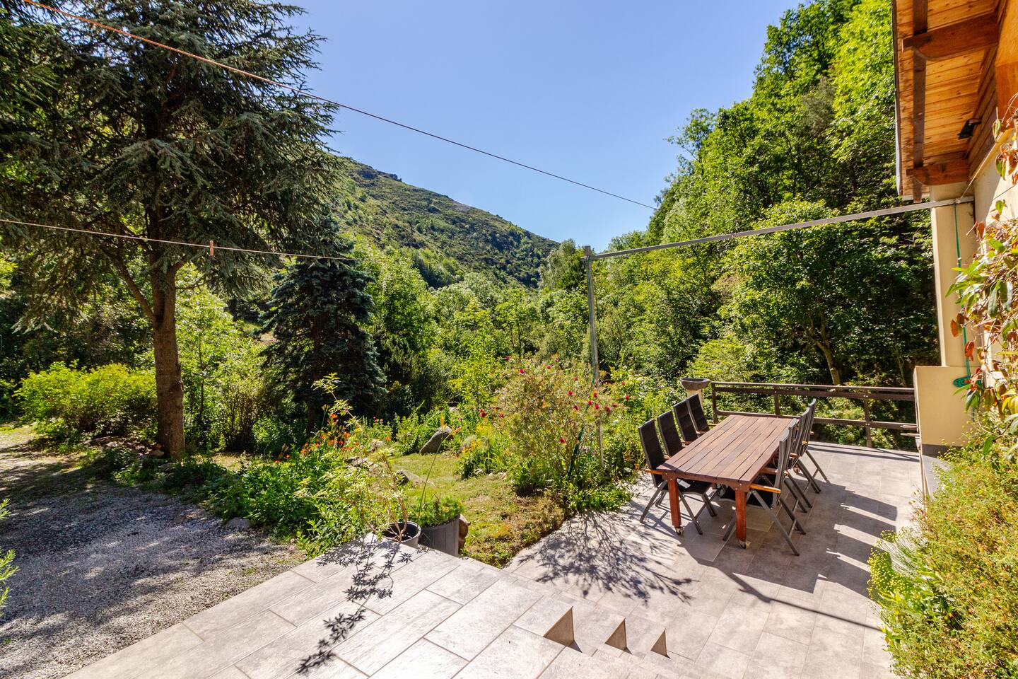"The River Mountain House" or "La Maison entre Deux Rivières" is a comfortable mountain villa in the eastern Pyrenees Catalan mountains, just over an hour from the Mediterranean Sea. The villa is situated at an altitude of 1.000m on a private property surrounded by two rivers and a natural swimming pool with waterfall in the garden (see the enclosed pictures)
