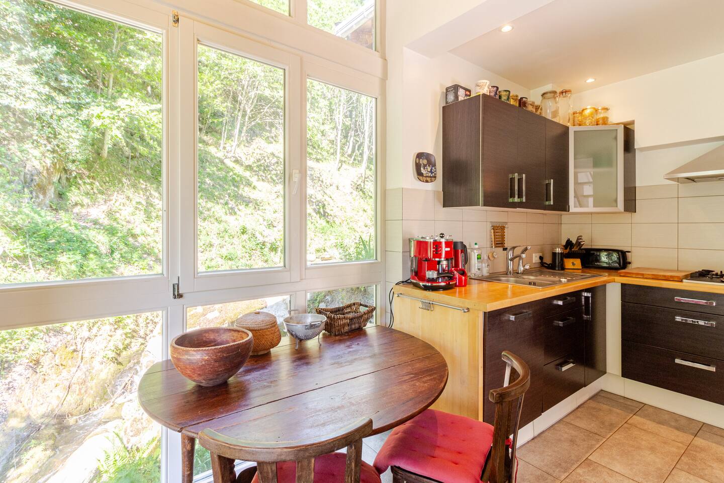 "The River Mountain House" or "La Maison entre Deux Rivières" in Nohèdes is a fully renovated mountain villa in the French Pyrenees-Orientales mountains, just over an hour's drive from Perpignan and the Mediterranean Sea. Situated at 1.000 meters altitude up in the mountains in the "Parc naturel régional des Pyrénées Catalanes", you can find the house located between two small river-streams which both flow on our own private property. The altitude and location of the house ensures very comfortable temperatures during the days and cool nights (!!) in the hot summer month . The house has four modern and comfortable large bedrooms, each with it's own look and character, sleeping 8 persons in total. (when required we do have 2 baby beds and 2 childrens high chairs available) The situation in the "Parc Natural Regional del Pirineu Català" ensures a nice and relaxing setting in a beautiful natural surrounding. During the summer you can enjoy the garden with the sounds of the waterfalls in the river and often many hundreds of butterflies flying from flower to flower... We have good drinking water from the natural watersource of the village but we also have our own natural watersource ensuring refreshing and great tasting cold drinking-water (So there is no need to bring bottled water!) And when you walk off of the property you find yourself surrounded by nature with numerous hiking trails and plenty of possibilities to enjoy your holidays. At hiking distance from the house you find three gorgeous lakes up in the mountains great for an afternoon or a full day's hike. Grocery shopping can be done at the town of Prades, 13km down the road where you can find several supermarkets (SuperU, Intermarché, Lidl) and ecological supermarket (Biocoop), boulangeries and on every Tuesday morning in the town center of Prades a large and enjoyable open market with plenty of local produce, fruits and vegetables.
